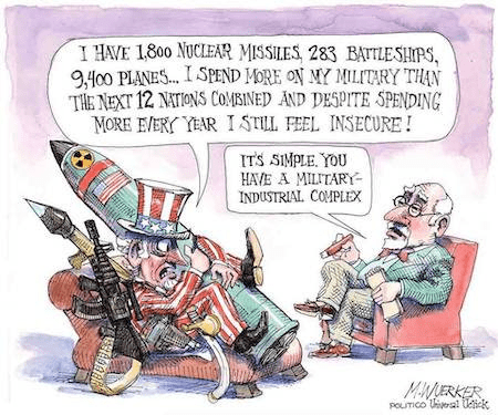 The case of the military/industrial complex is well known. Only the government can effectively defend us from potential foreign aggressors, so we are forced to live with the inefficiencies (corruption if you like) of the near monopoly that defense firms enjoy that ensures that the DOD keeps buying their products. The B-2 stealth bomber cost $2,100 million per plane. The scandalous F-35, the plane no one wants, cost US tax payers $115.5 million per plane. But the real cost to us of the military/industrial complex is the cost in lives, equipment, and reputation of our forever wars that ensure that BAE Systems, Bell Helicopter, Boeing, Lockheed Martin, Northrop Grumman, Pratt and Whitney and a few others, keep receiving billions of tax dollars every year.