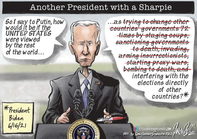 In his meeting with President Putin, President Biden is thought to have proposed red lines against the use of cyber weapons such as ransomware. The idea of shutting down something like Colonial Pipeline with a computer hack is surely repugnant. I seem to remember that many of us cheered when the U.S. (and Israel?) damaged the Iranian uranium enrichment facility at Natanz with a malicious computer worm called Stuxnet. Nor were many of us much bothered when U.S. financed coups topped unfriendly governments, or when we attacked Afghanistan, Iraq, Libya, Haiti, Nigeria, Syria, to name but a few.